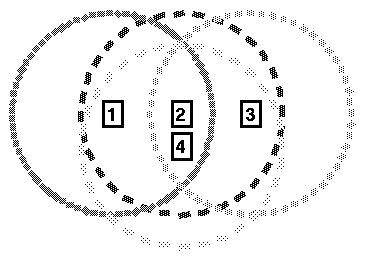 The situation in Figure 1.3 becomes more complicated with the addition of more nodes. The addition of just one node, as illustrated in Figure 1.4, results in multiple paths existing between nodes 1 and 3; packets may travel the path 1 - 2 - 3, 1 - 4 - 3, or even 1 - 4 - 2 - 3. An ad hoc routing protocol must be able to decide on a single "best" path between any two nodes.
