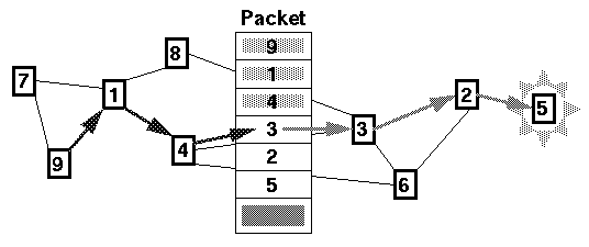Figure 4.1: A packet being source routed from node 9 to node 5.